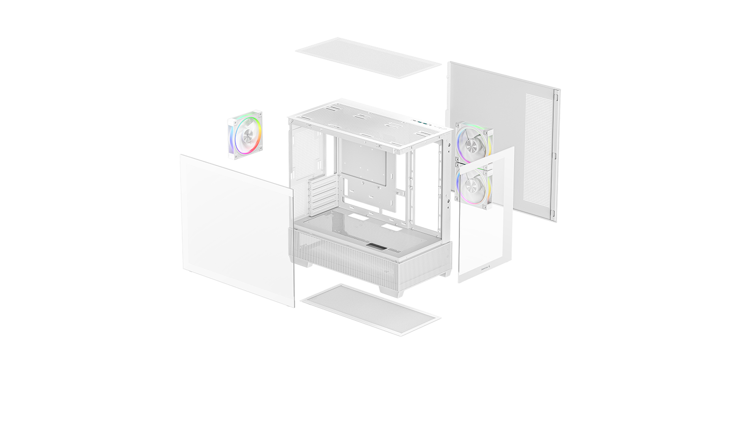 mATX, Cooler height 176mm, VGA 410mm, PSU is bottom; 3,5*2, 2,5*3, USB 3.0*2, Type-C*1, Audio*1, PCI *5, 437*235*451mm, ABS+SGCC+Закалённое стекло, 6.83kg