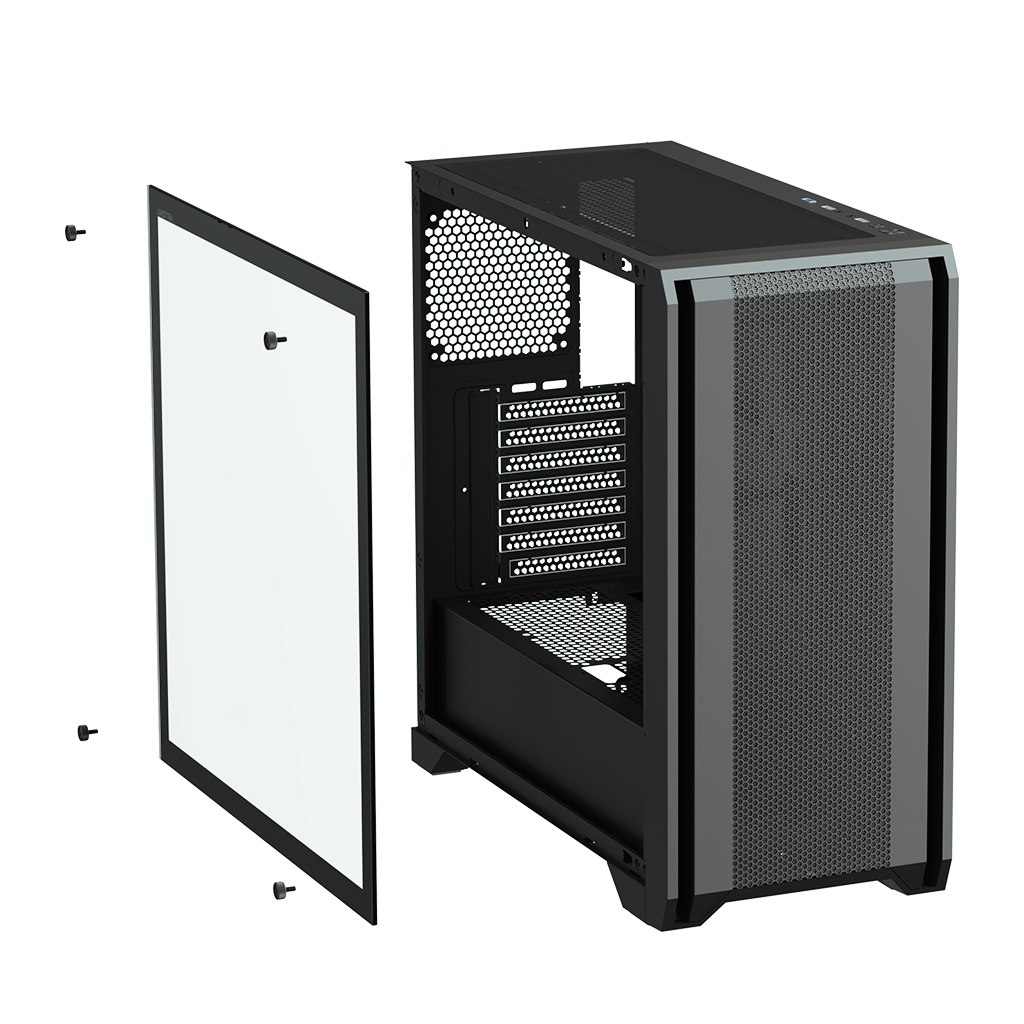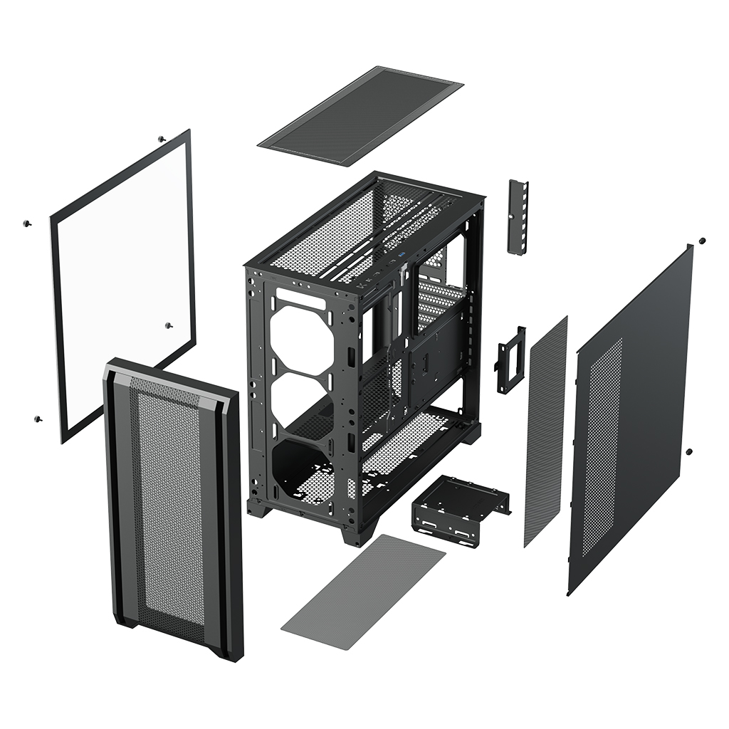 Толщина стали - 0,7мм, Mini-ITX, Micro-ATX, ATX; 465(д)*218(ш)*461mm(в); CPU Cooler - upto 165mm, VGA - upto 415mm;2-USB 2.0;1-USB3.0; AIO- Top:360mm(Max.Radiator L:405mm) ; Front: 360mm