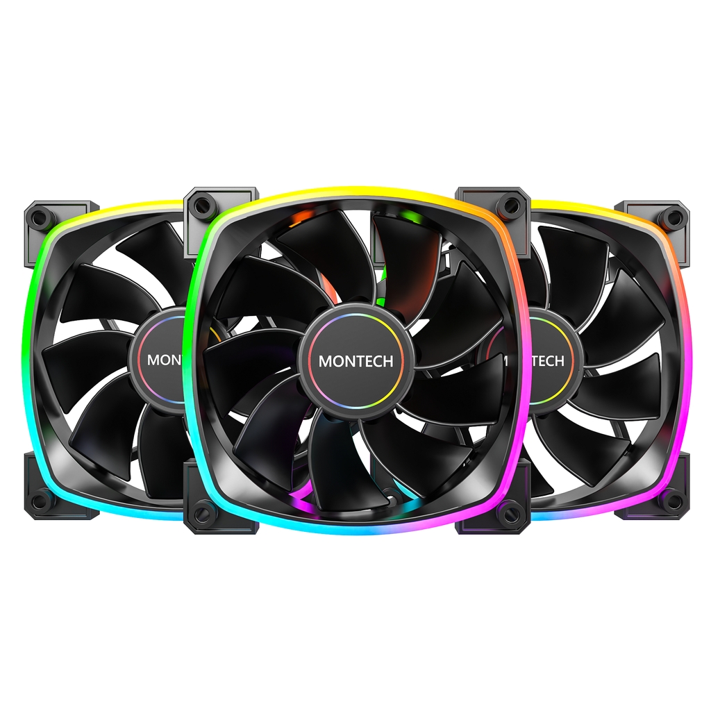 Комплект вентиляторов (3 шт.) Montech AX120 PWM Black / 120mm, 4pin PWM, 3pin ARGB, 800-1600RPM, 59.0CFM, 27.0dBA, Rifle bearing / AX120B3P индекс: MT_AX120B3P P/n: AX120B3P
