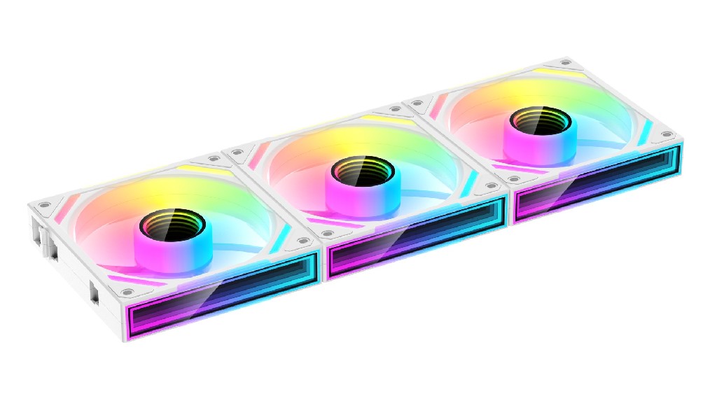 3 white fan +2шт adapter cables; соединяются в цепочку из трех вентиляторов.