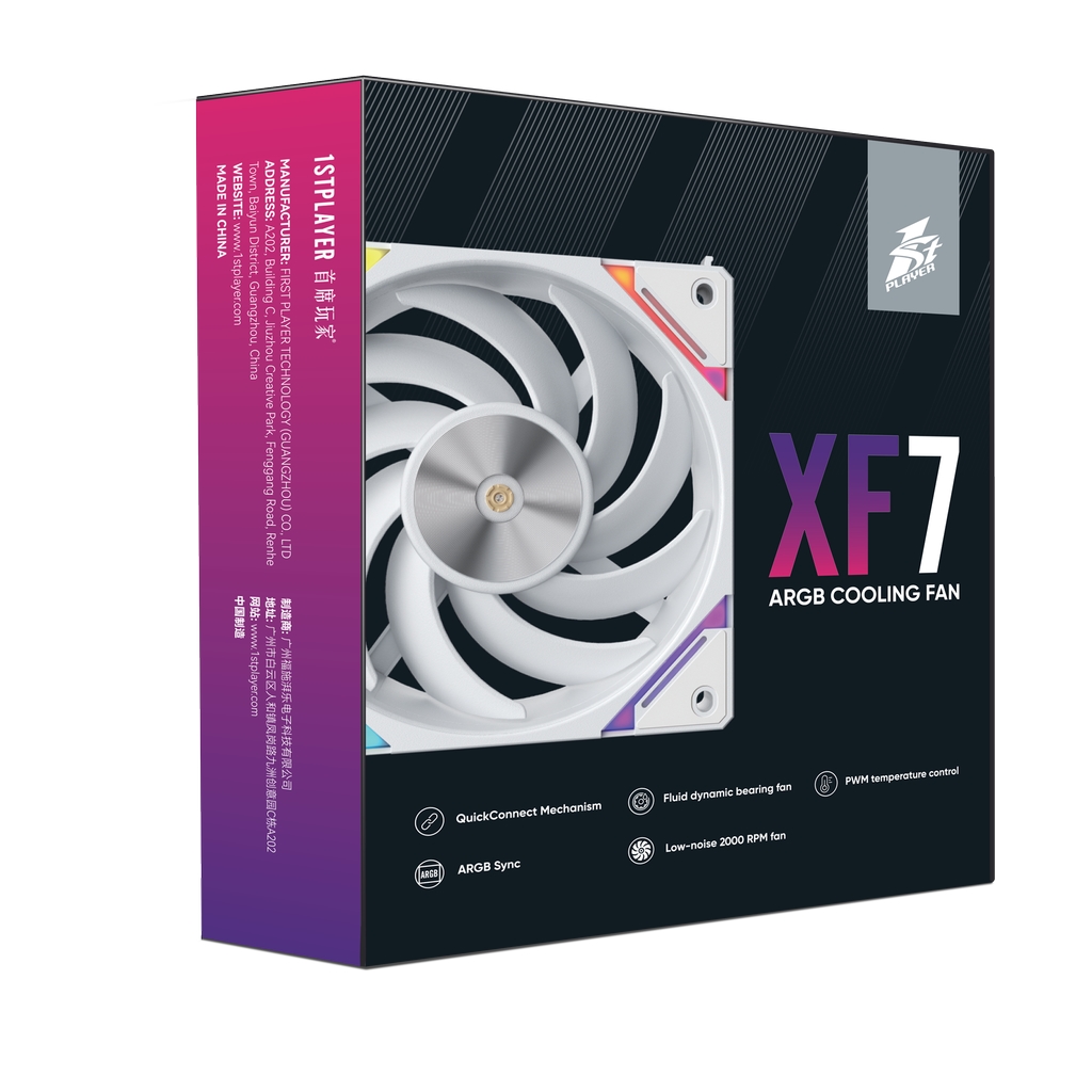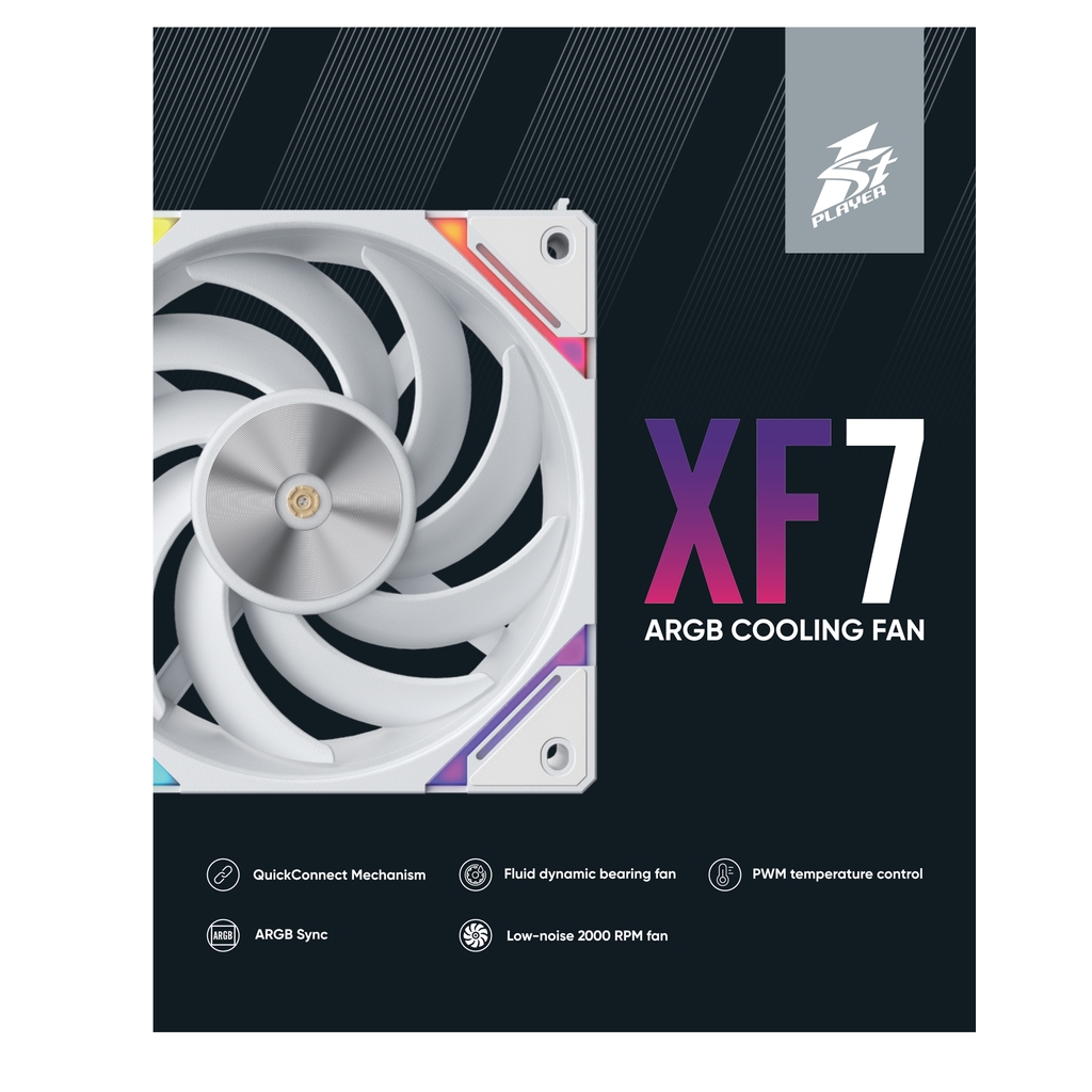 Вентилятор 1STPLAYER XF7 White / 120mm ARGB 3pin 5V PWM 4pin 12V 600-2000rpm 56.8cfm 33.12dBA / XF7-WH-1IN1