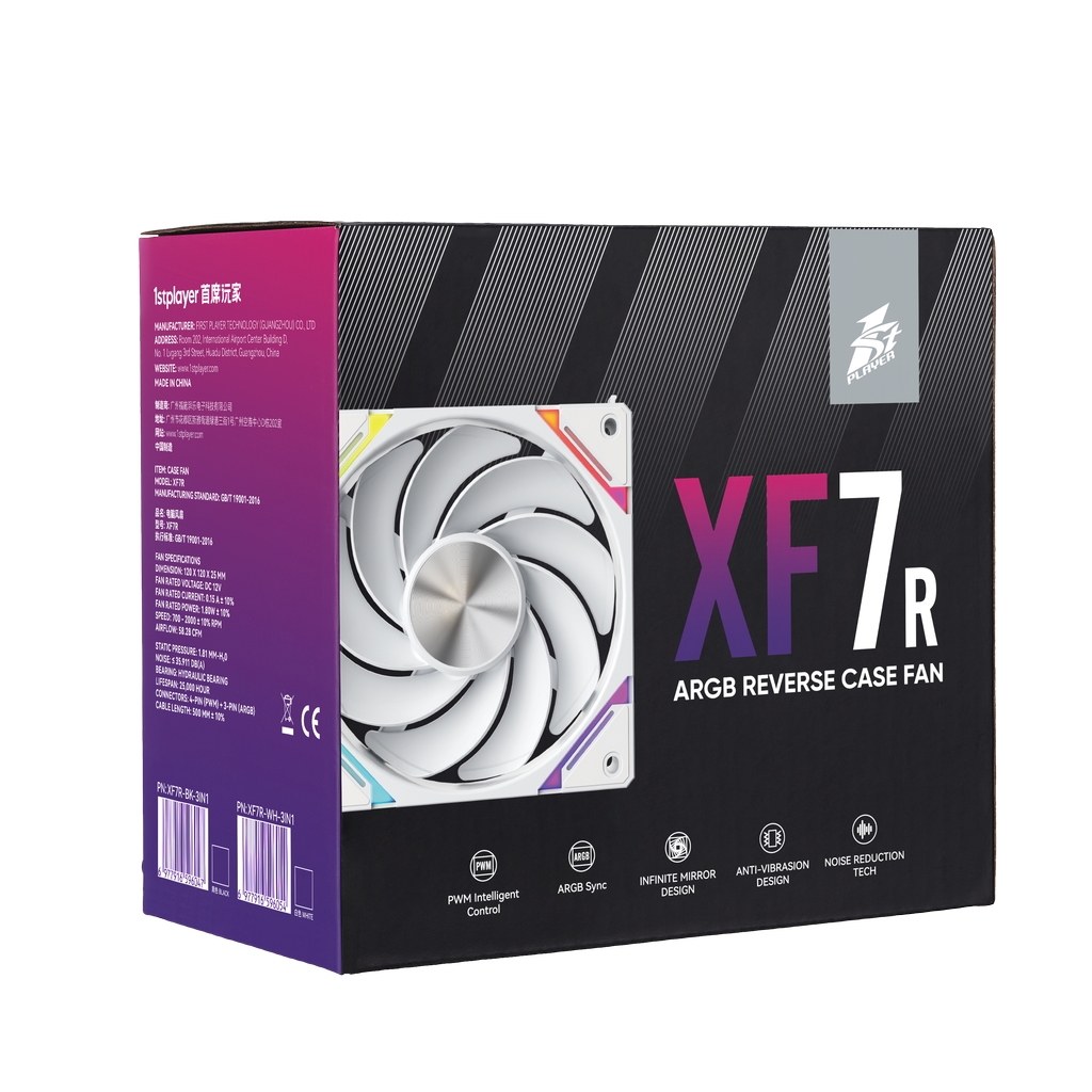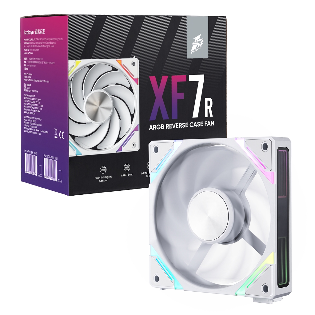 Комплект вентиляторов (3 шт.) 1STPLAYER XF7R White / 120mm Reverse ARGB 3pin 5V PWM 4pin 12V 600-2000rpm 56.8cfm 33.12dBA / XF7R-WH-3IN1