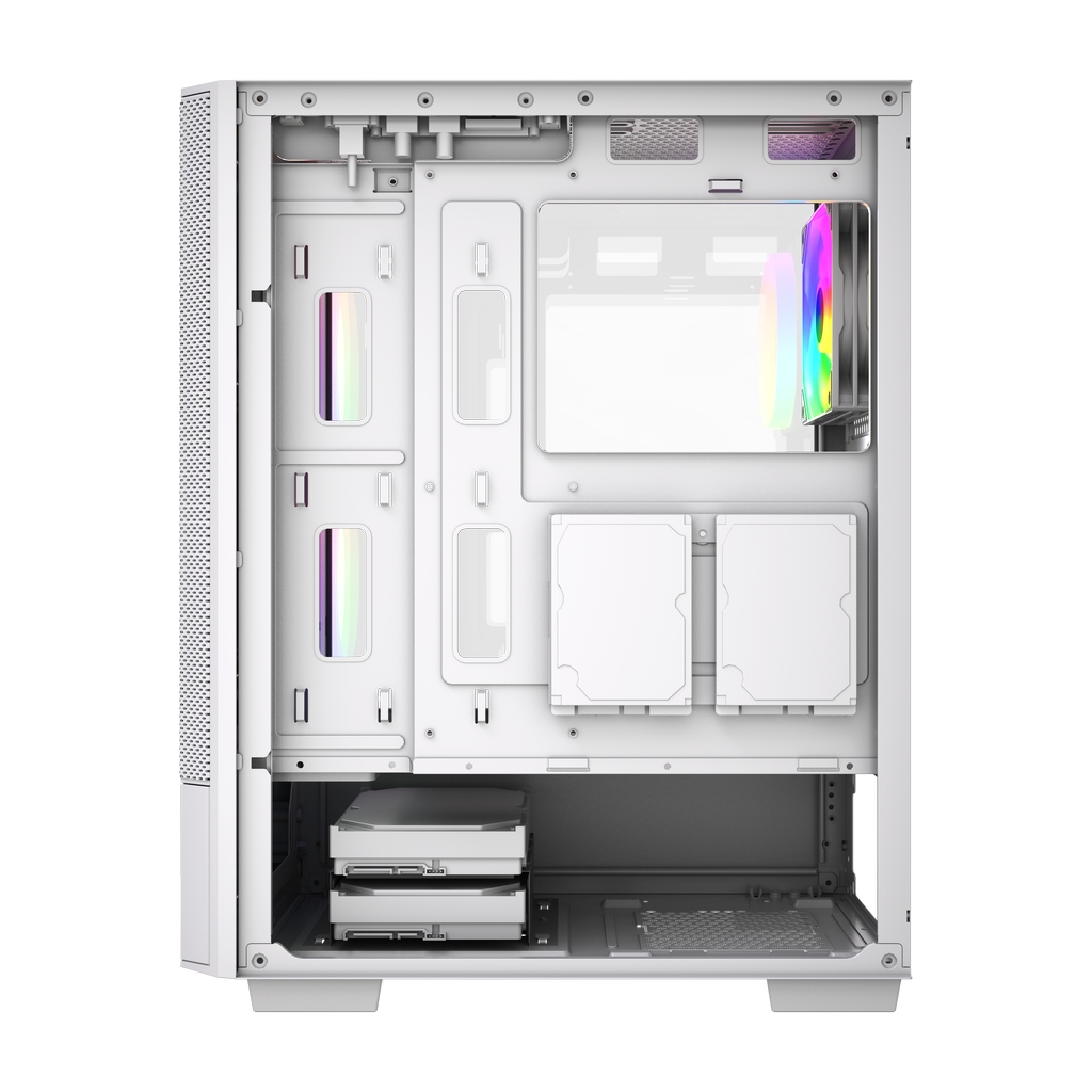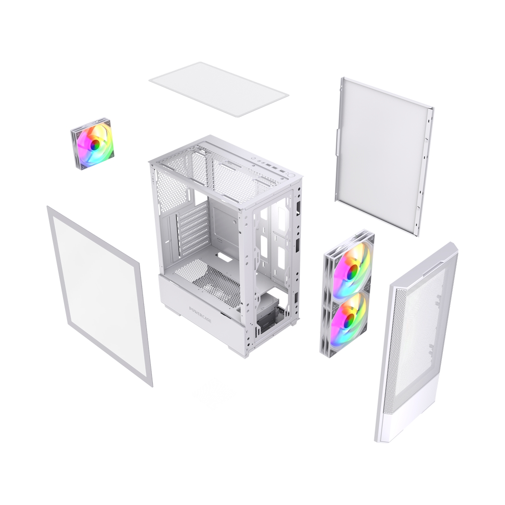 Размеры (ШхВхГ): 216x465x365mm, SPCC 0.45mm.CPU кулер 175мм (макс),VGA 305mm, PSU up to ***mm. Слоты: 3,5"х2, 2,5"х2, 7xPCI. Охлаждение: Front: 2х140мм ARGB fans (inc.). Rear:1х120мм ARGB fan (inc.). I/O Panel: USB3.0 x 1 / USB2.0 x 2 , HD audio.
