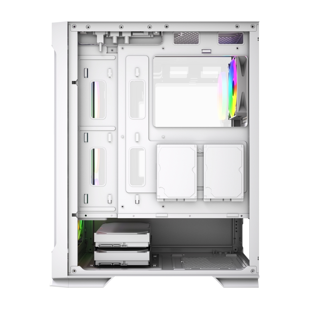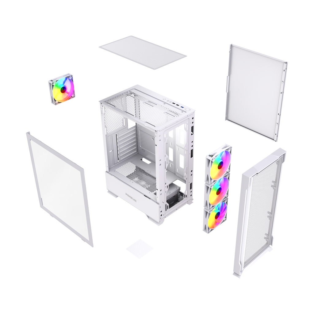 Размеры (ШхВхГ): 216x465x365mm, SPCC 0.45mm.CPU кулер 175мм (макс),VGA 305mm, PSU up to ***mm. Слоты: 3,5"х2, 2,5"х2, 7xPCI. Охлаждение: Front: 3х120мм ARGB fans (inc.). Rear:1х120мм ARGB fan (inc.). I/O Panel: USB3.0 x 1 / USB2.0 x 2 , HD audio.