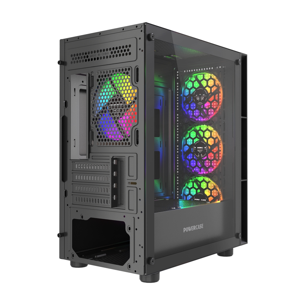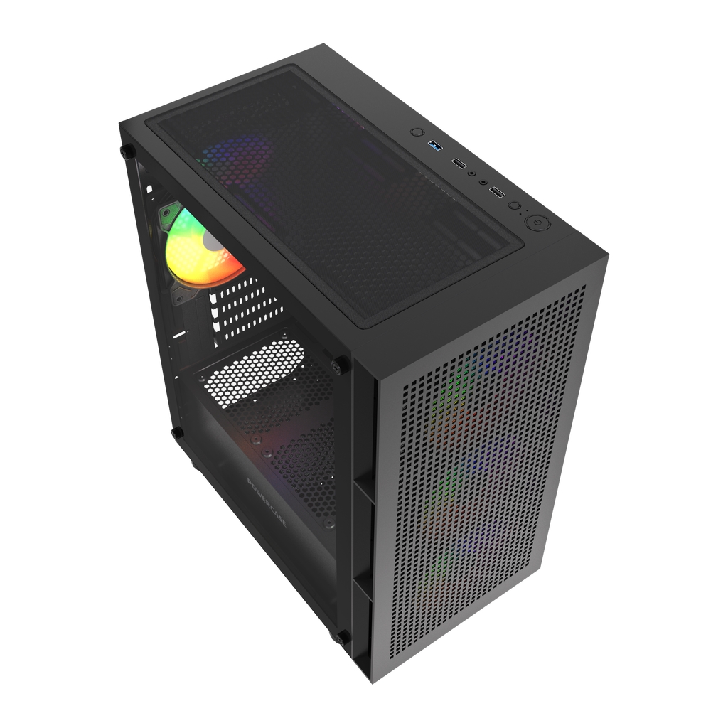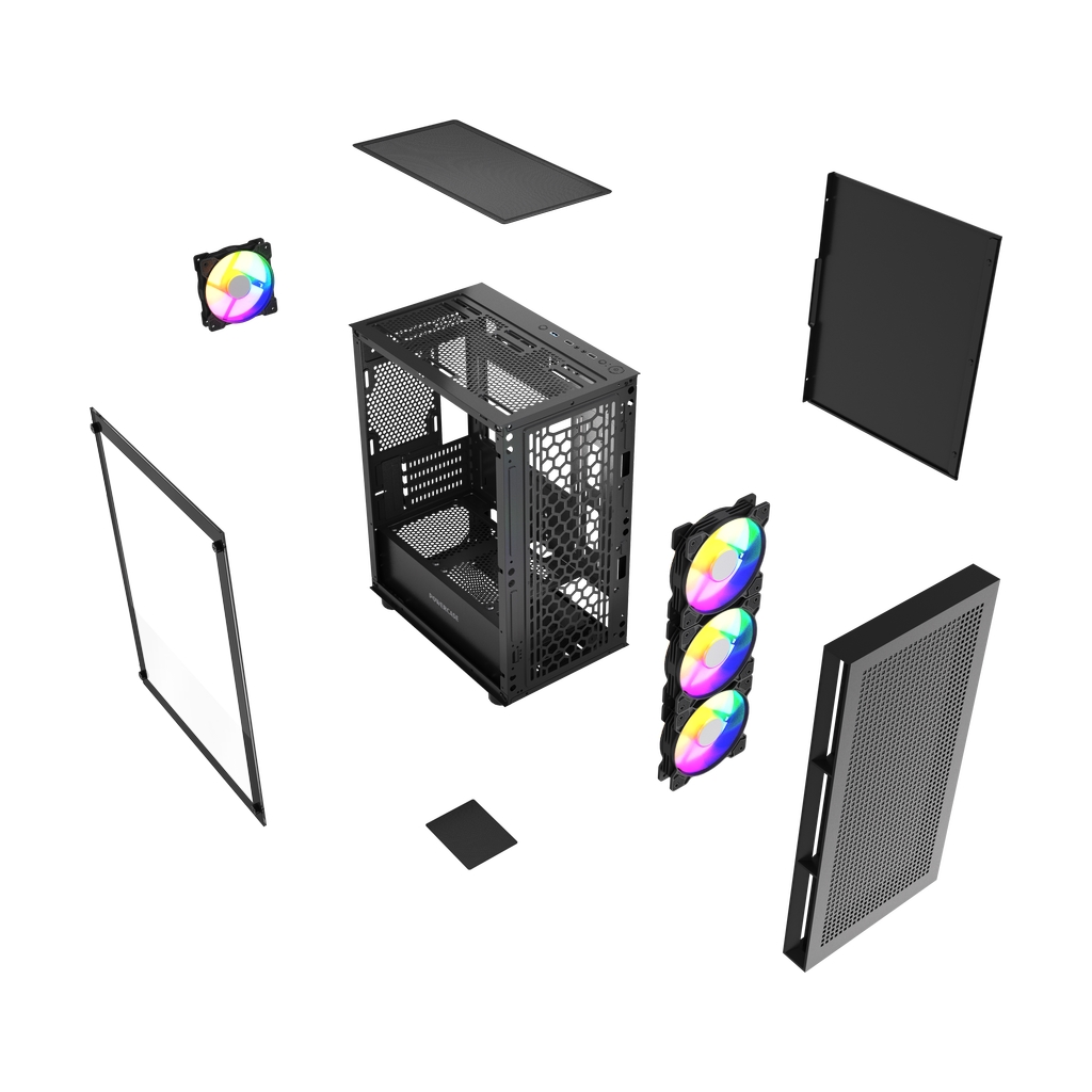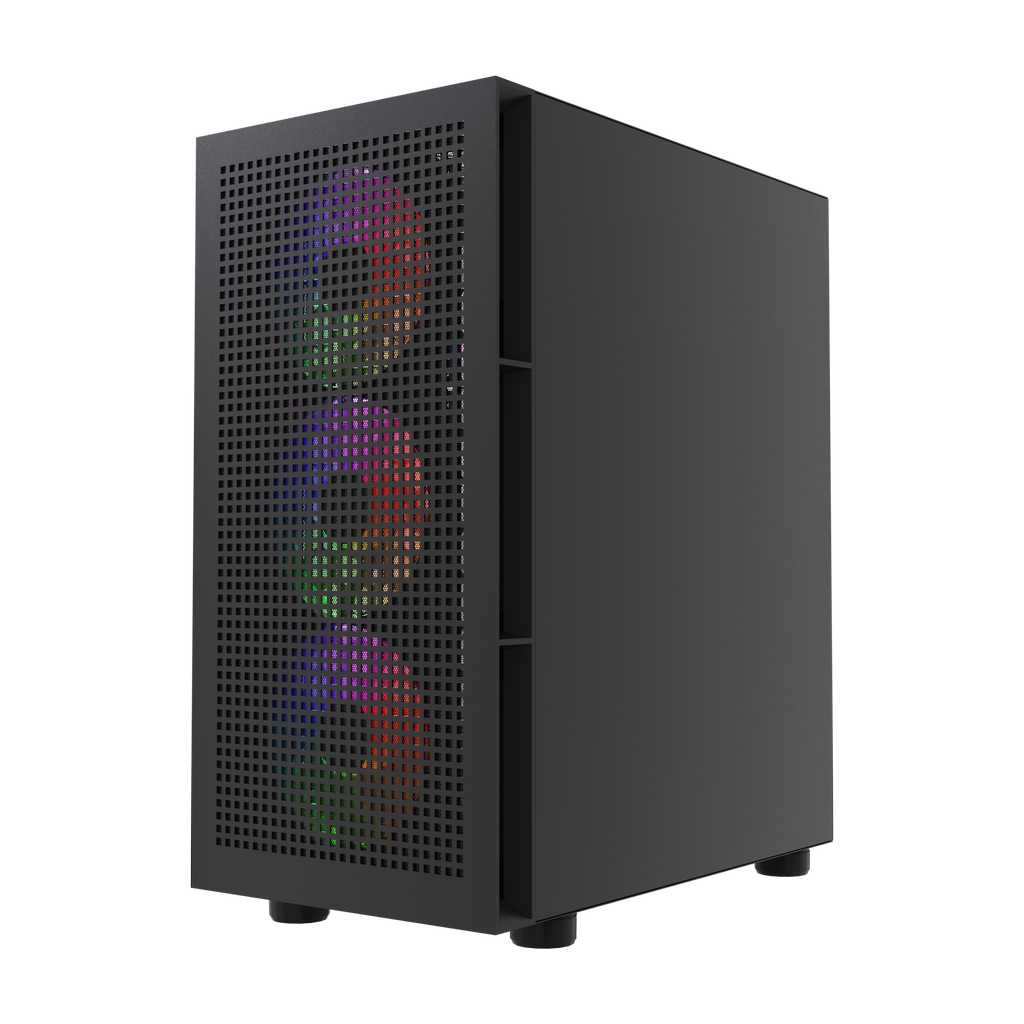 Размеры (ШхВхГ): 212x420x365mm, SPCC 0.4mm.CPU кулер 165мм (макс),VGA 300mm, PSU 170mm. Слоты: 3,5"х1, 2,5"х1, 4xPCI. Охлаждение: Front: 3х120мм ARGB fans (inc.). Top: 3х120мм, Rear: 1х120мм ARGB fan (inc.). I/O Panel: USB3.0 x 1 / USB2.0 x 2 , HD audio.
