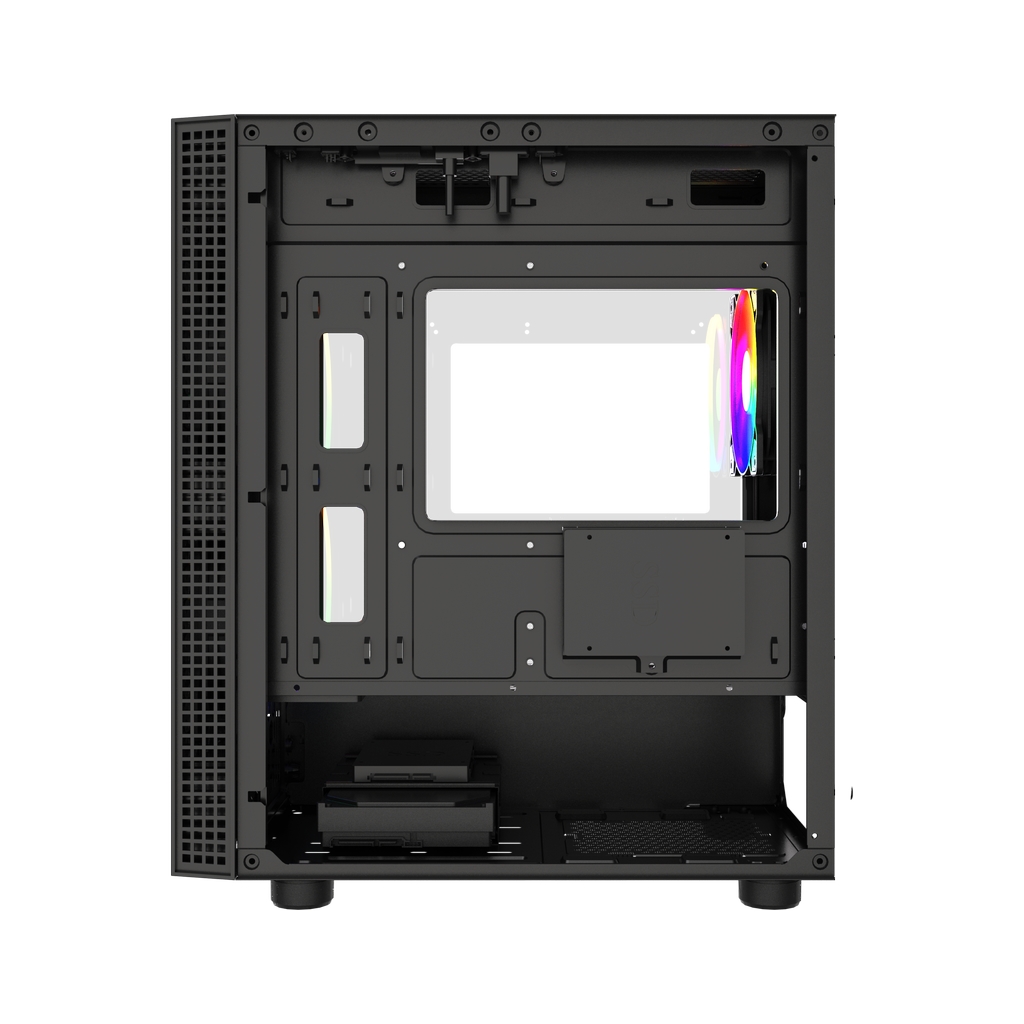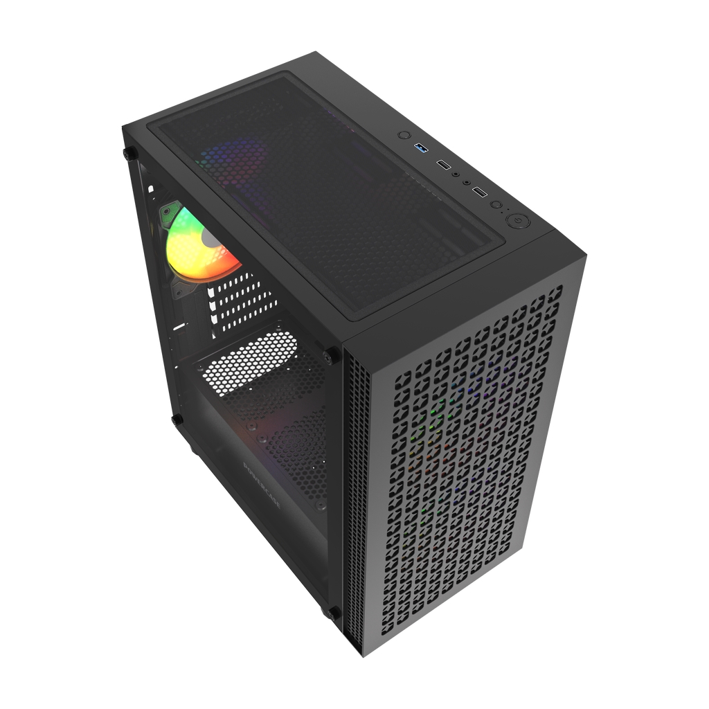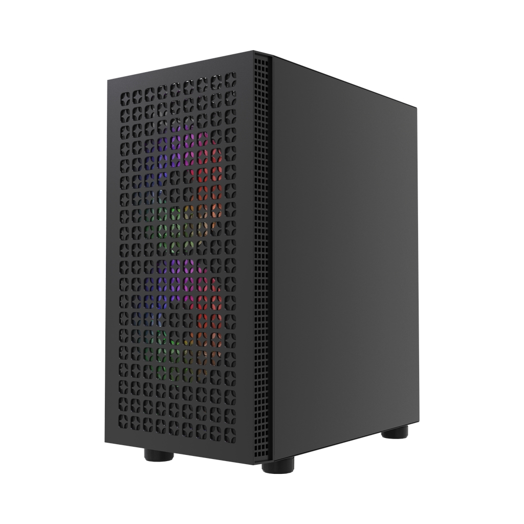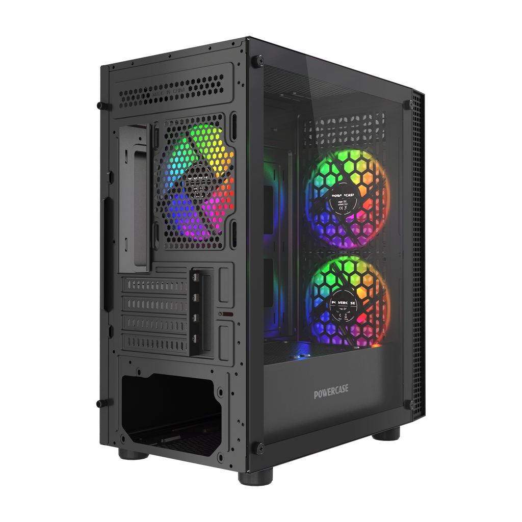 Размеры (ШхВхГ): 212x420x365mm, SPCC 0.4mm.CPU кулер 165мм (макс),VGA 300mm, PSU 170mm. Слоты: 3,5"х1, 2,5"х1, 4xPCI. Охлаждение: Front: 2х140мм ARGB fans (inc.). Top: 3х120мм, Rear: 1х120мм ARGB fan (inc.). I/O Panel: USB3.0 x 1 / USB2.0 x 2 , HD audio.