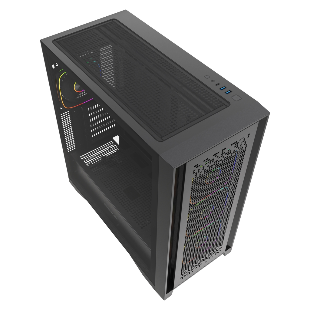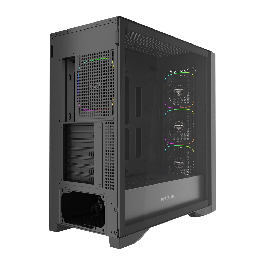 Корпус Powercase ByteFlow Pro ARGB, Black, Tempered Glass, Type-C, 4x 120мм ARGB PWM Fans, чёрный, E-ATX (CH9GPB-A4)
