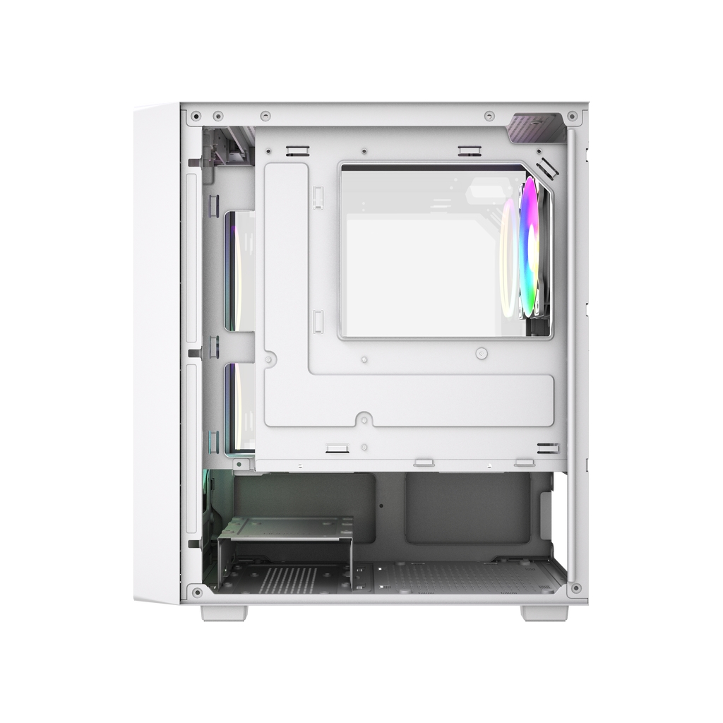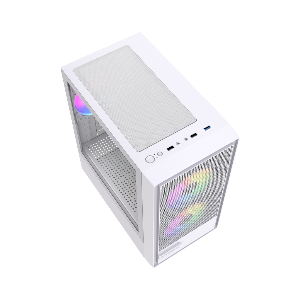Размеры (ШхВхГ): 195x387x335mm,SPCC 0.45mm.CPU кулер 160мм (макс),VGA 300mm, PSU 160mm. Слоты: 3,5"х1, 2,5"х2, 4xPCI. Охлаждение: Front: 2х120мм ARGB (inc.).Top: 2х120/140мм, Rear: 1х120мм ARGB (inc.). I/O Panel: USB3.0 x 1 / USB2.0 x 2 , HD audio.