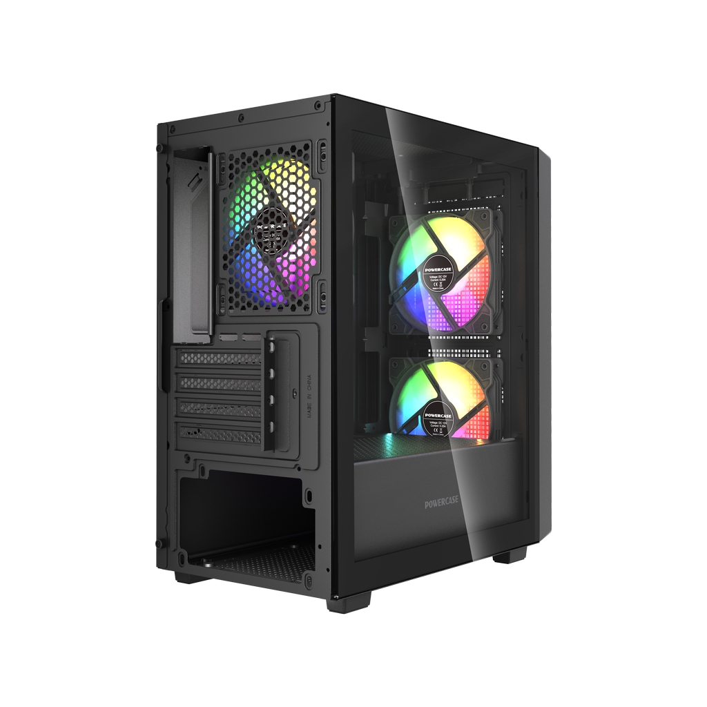 Размеры (ШхВхГ): 195x387x345mm,SPCC 0.45mm.CPU кулер 160мм (макс),VGA 300mm, PSU 160mm. Слоты: 3,5"х1, 2,5"х2, 4xPCI. Охлаждение: Front: 2х120мм ARGB fans (inc.). Top: 2х120мм, Rear: 1х120мм ARGB fan (inc.). I/O Panel: USB3.0 x 1 / USB2.0 x 2 , HD audio.