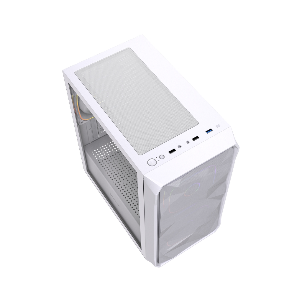Размеры (ШхВхГ): 195x387x345mm,SPCC 0.45mm.CPU кулер 160мм (макс),VGA 300mm, PSU 160mm. Слоты: 3,5"х1, 2,5"х2, 4xPCI. Охлаждение: Front: 2х120мм ARGB fans (inc.). Top: 2х120мм, Rear: 1х120мм ARGB fan (inc.). I/O Panel: USB3.0 x 1 / USB2.0 x 2 , HD audio.