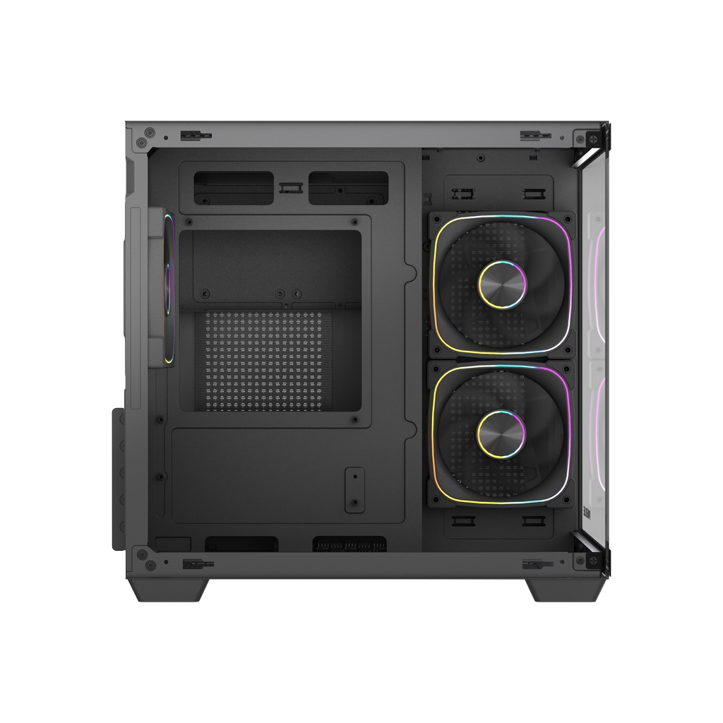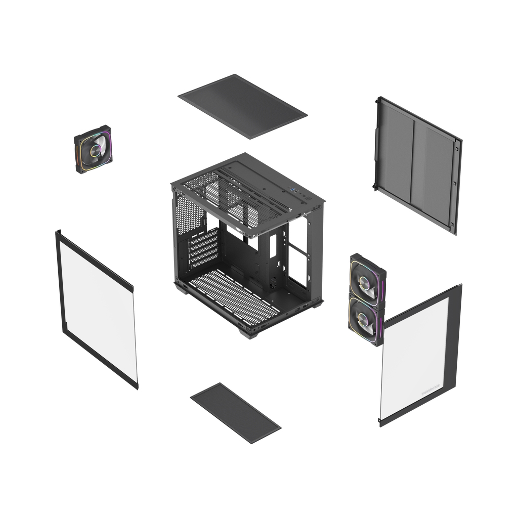 Размеры (ШхВхГ):275x354x335mm, MB size WxH (220x260мм), CPU кулер 160мм, VGA 340mm. Слоты: 3,5"х1, 2,5"х2, 5xPCI. Охлаждение:Top side: 2х120/140мм, Rear: 1х120мм(inc.), Bottom: 2x120мм, MB tray: 2x120мм(inc.). I/O Panel: USB3.0 x 1, USB 2.0 x 1, Type-C
