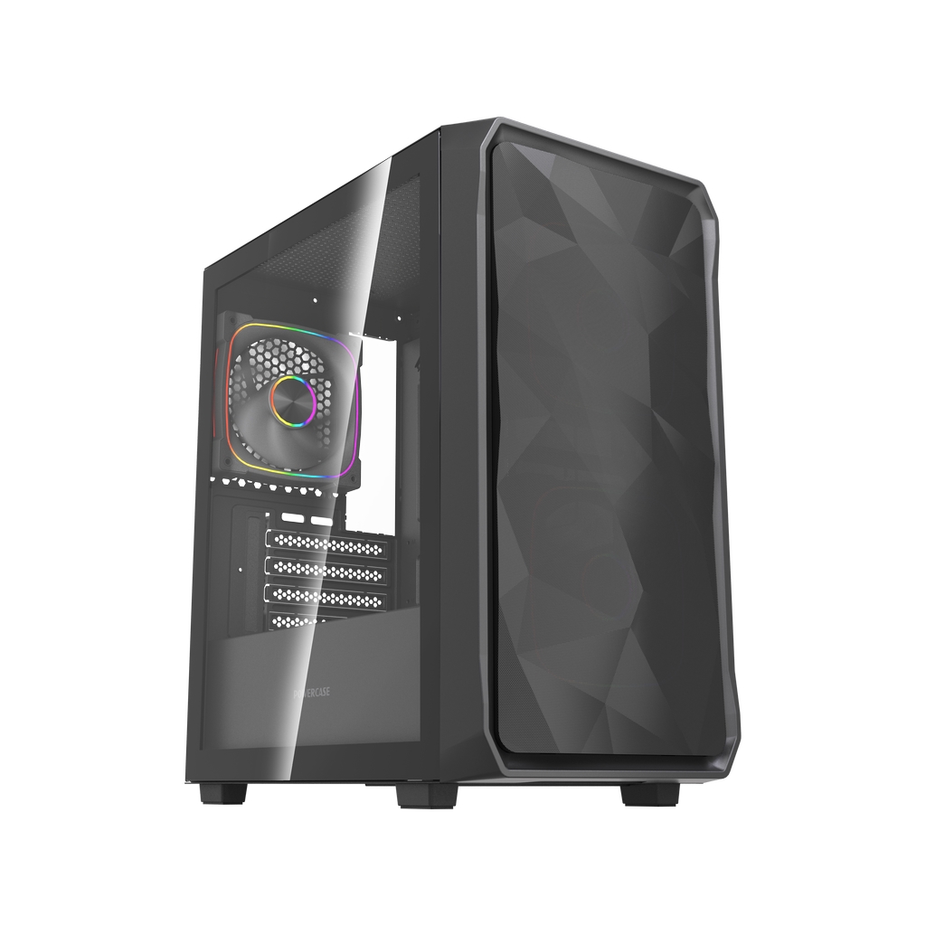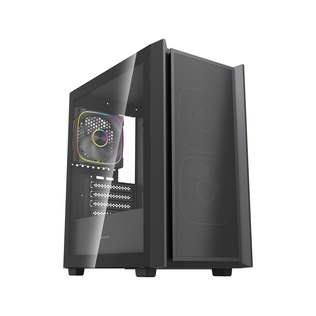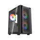 Размеры (ШхВхГ): 195x387x345mm,SPCC 0.45mm.CPU кулер 160мм (макс),VGA 300mm, PSU 160mm. Слоты: 3,5"х1, 2,5"х2, 4xPCI. Охлаждение: Front: 2х120мм ARGB fans (inc.). Top: 2х120мм, Rear: 1х120мм ARGB fan (inc.). I/O Panel: USB3.0 x 1 / USB2.0 x 2 , HD audio.