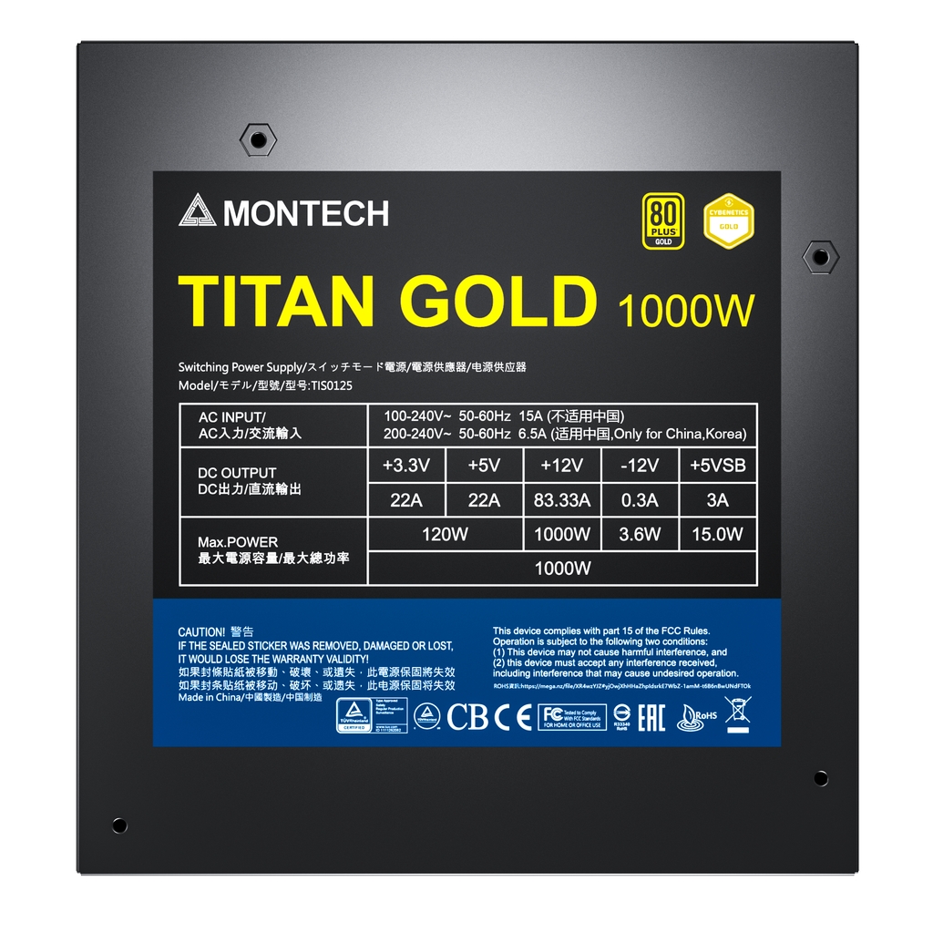 Блок питания Montech TITAN GOLD 1000W / ATX 3.0, APFC, 80 PLUS Gold, Half Bridge LLC, DC-DC, Japan caps, 135mm fan, full modular / TITAN GOLD 1000W