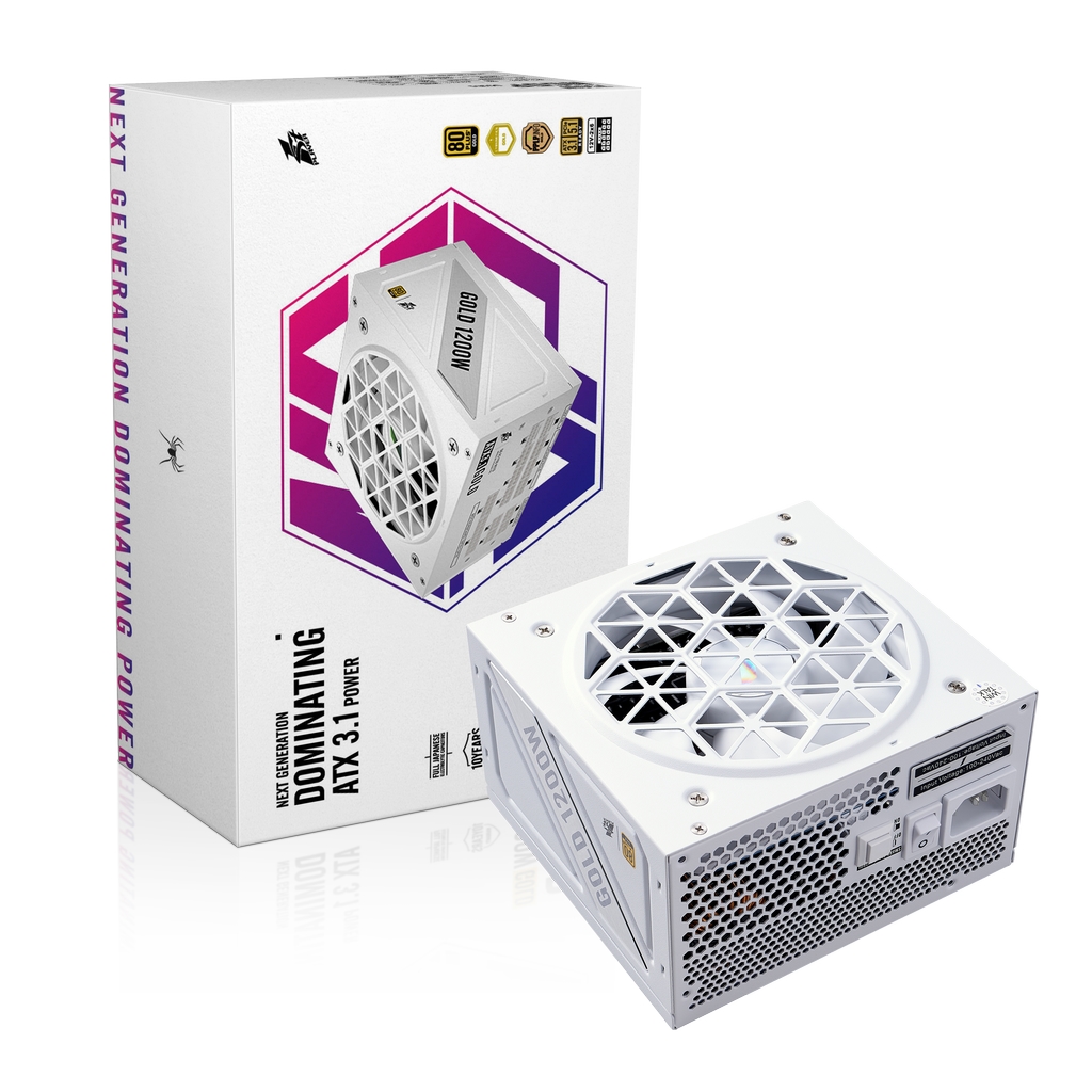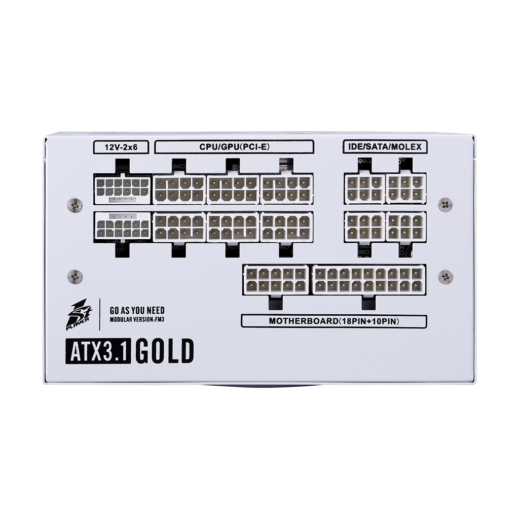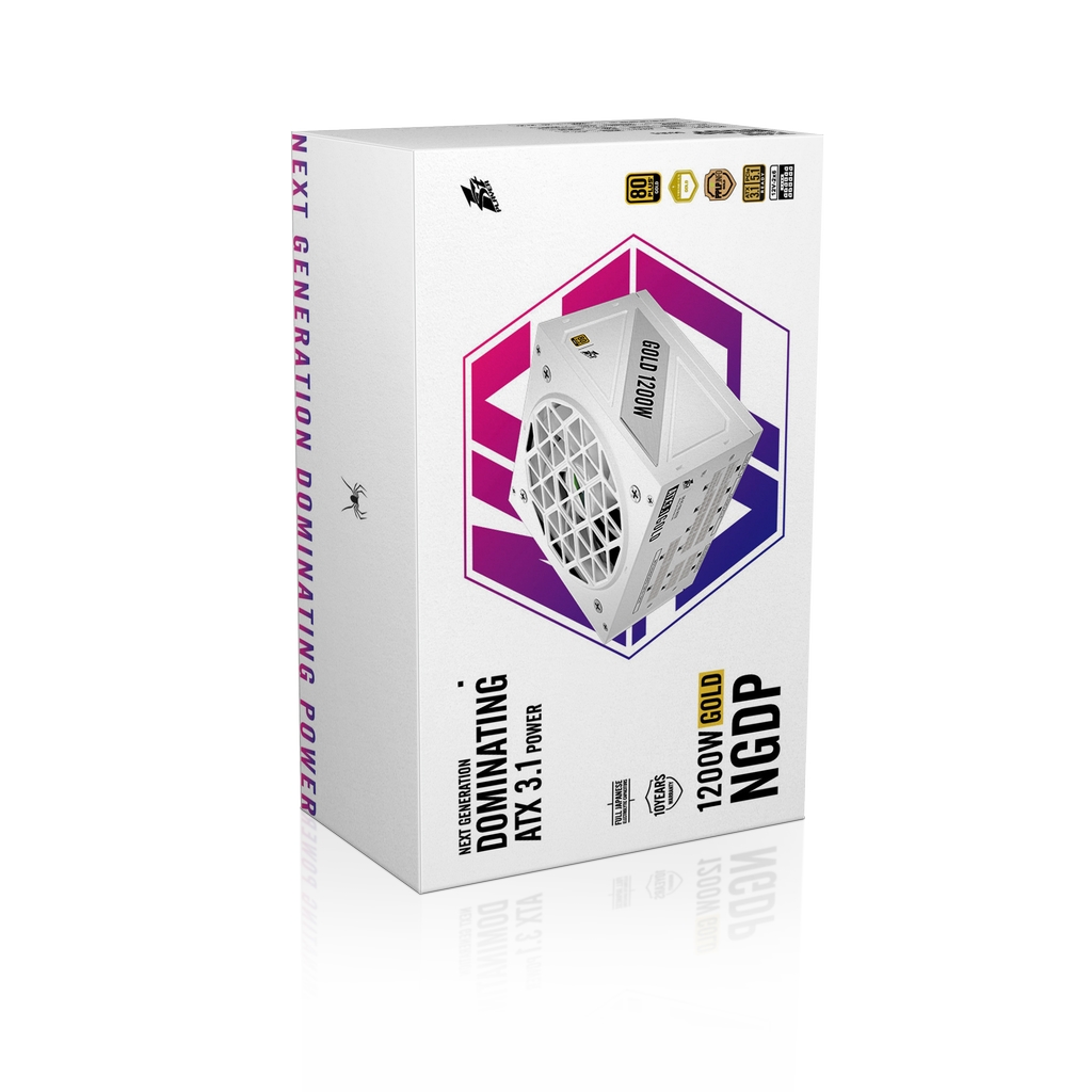 Блок питания 1STPLAYER NGDP GOLD 1200W White / ATX 3.1, PCle 5.1, APFC, 80 PLUS Gold, LLC+DC-DC, full Japan solid-state caps, 120mm fan, full modular / HA-1200BA4-WH