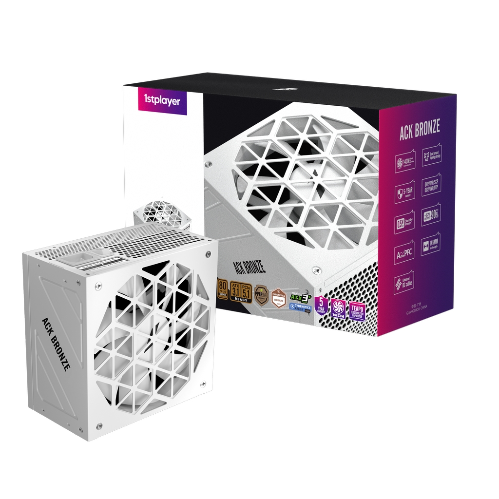 Блок питания 1STPLAYER ACK BRONZE 850W White / ATX 3.1, PCIe 5.1, APFC, 80 PLUS Bronze, Double Forward, full Teapo caps, 140mm fan, non-modular / HA-850AA2-WH