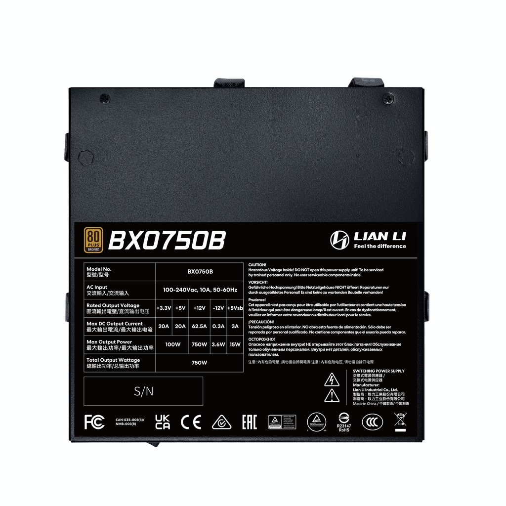 Блок питания Lian Li BX0750B / Black / ATX 3.1, 750W, 80 PLUS Bronze, PCIe 5.1, APFC, DC-DC, 135mm FDB Fan, Non Modular / G9P.BX0750B.B000.RU