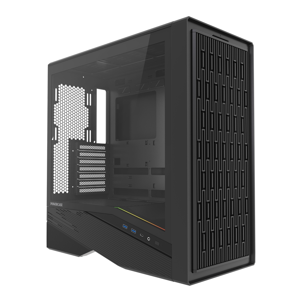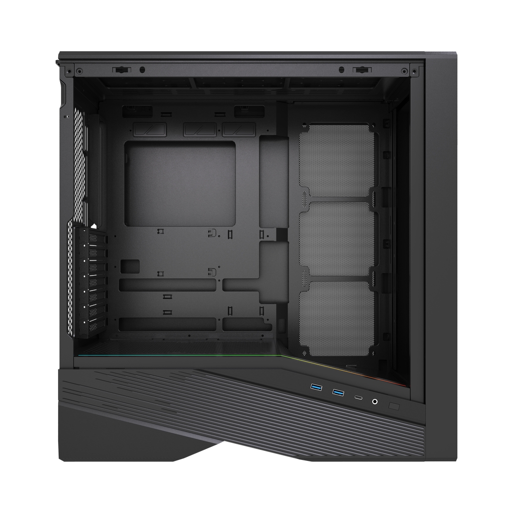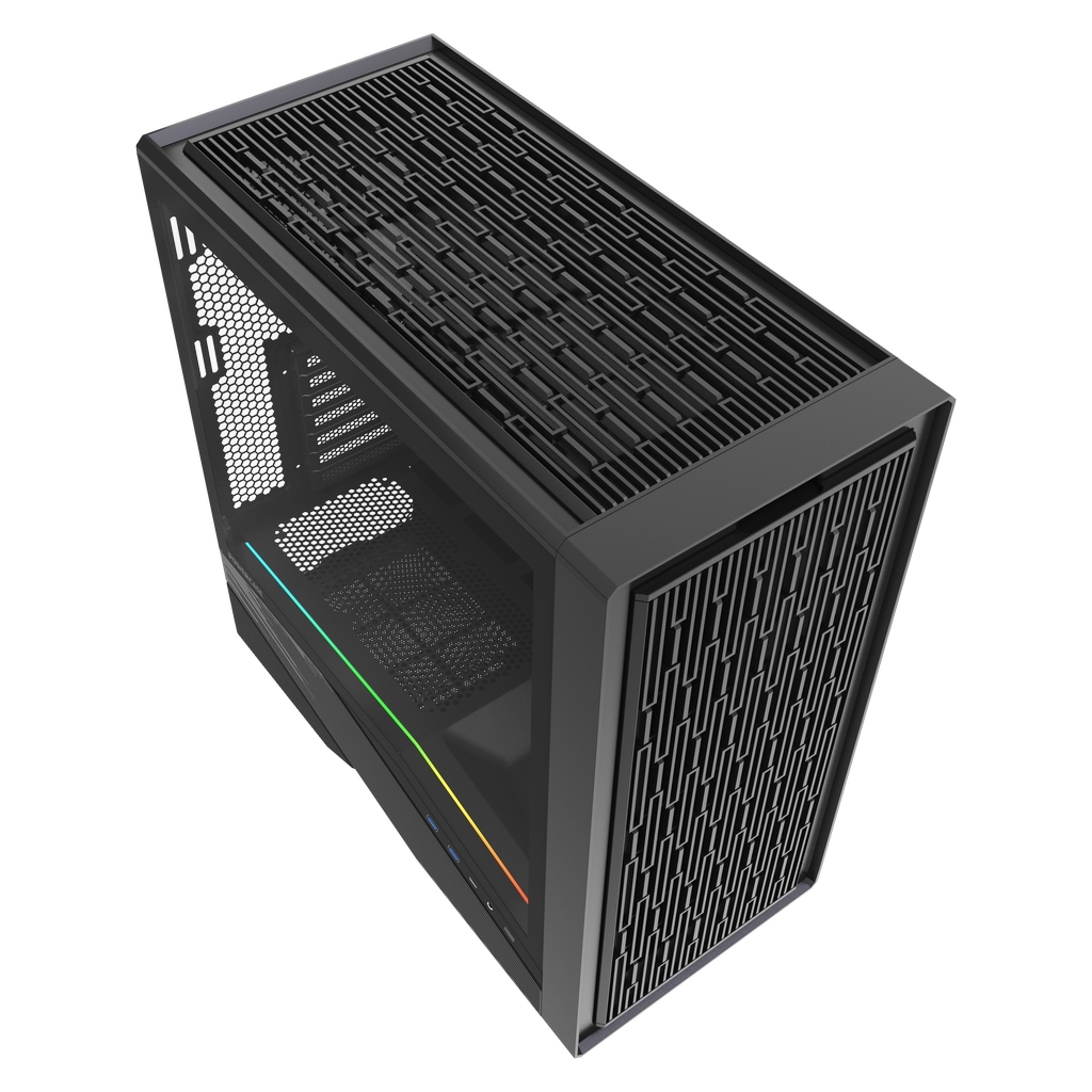 Размеры Ш*В*Г: 235x475x466мм, SPCC 0.7mm, VGA 395mm (с вентиляторами на фронтальной панели), CPU 182mm (Max.), Water cooler: 240/360mm on top, 3.5''HDD x 1, 2.5''SSD x 1, USB3.0 x 2+Type-C x 1, HD Audio
