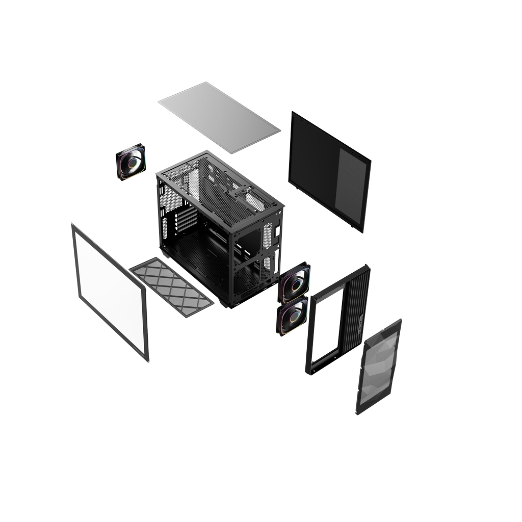 Размеры Ш*В*Г: 242x370x465мм, SPCC 0.8mm, VGA 375mm, CPU 180mm (Max.), 3x 120мм ARGB PWM Fans, Water cooler: 240/360mm on top, 3.5''HDD x 2, 2.5''SSD x 1, USB3.0 x 2+Type-C x 1, HD Audio