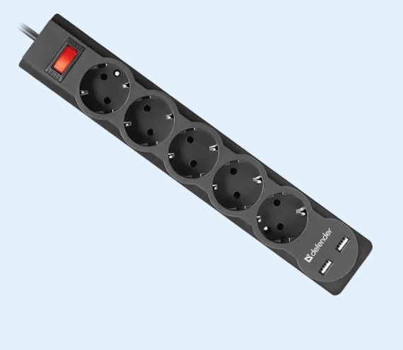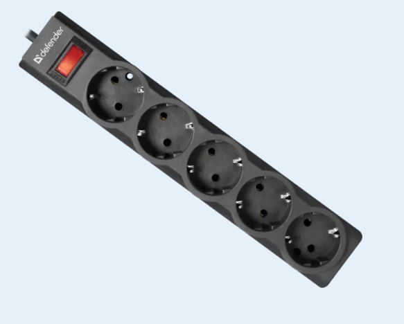 Сетевой фильтр Defender ES 1.8 m 5 розеток черный (99484)220 В / 50-60 Гц, 2200 Вт, 10 А, 5 розеток с заземлением, длина 1,8м, 5.3 x 4.0 x 27.7 см, черныйиндекс: Def.99484 P/n: 99484