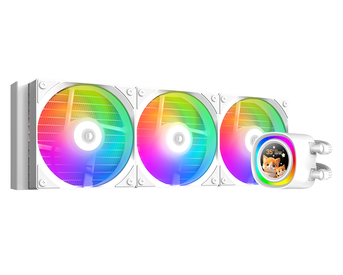 Комплект водяного охлаждения ID-COOLING FX360 LCD WHITE LGA1851/1700/1200/115X/AM4/AM5 (6шт/кор,TDP 350W, ARGB FAN and PUMP, LCD Display, PWM, TRIPLE FAN 120mm, белый) RET1.8W, 300~2000RPM, 3 Fans (AS-120-ARGB V2) 120x25mm , макс.поток 58CFM(1 Fan), шум Fun:<27.2dB(A), давление 1,94mmH2O, помпа 73x69x57mm, Pump:25dB(A), Pump speed 2900RPM, Pump current 0.45A, 4Pin PWM+3Pin ARGBиндекс: IDC_FX360 LCD_WHITE P/n: FX360 LCD WHITE